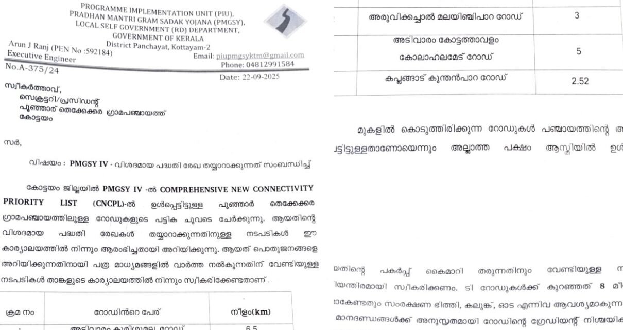 പൂഞ്ഞാർ തെക്കേക്കര മണ്ഡലം കോൺഗ്രസ് കമ്മറ്റി, ശ്രീ ആന്റോ ആന്റണി എംപി യോട് അവശ്യപെട്ടതിന് പ്രകാരമാണ് പ്രെസ്തുത റോഡുകൾ ഈ പദ്ധതിയിൽ ഉൾപ്പെടുത്തിയത്.
