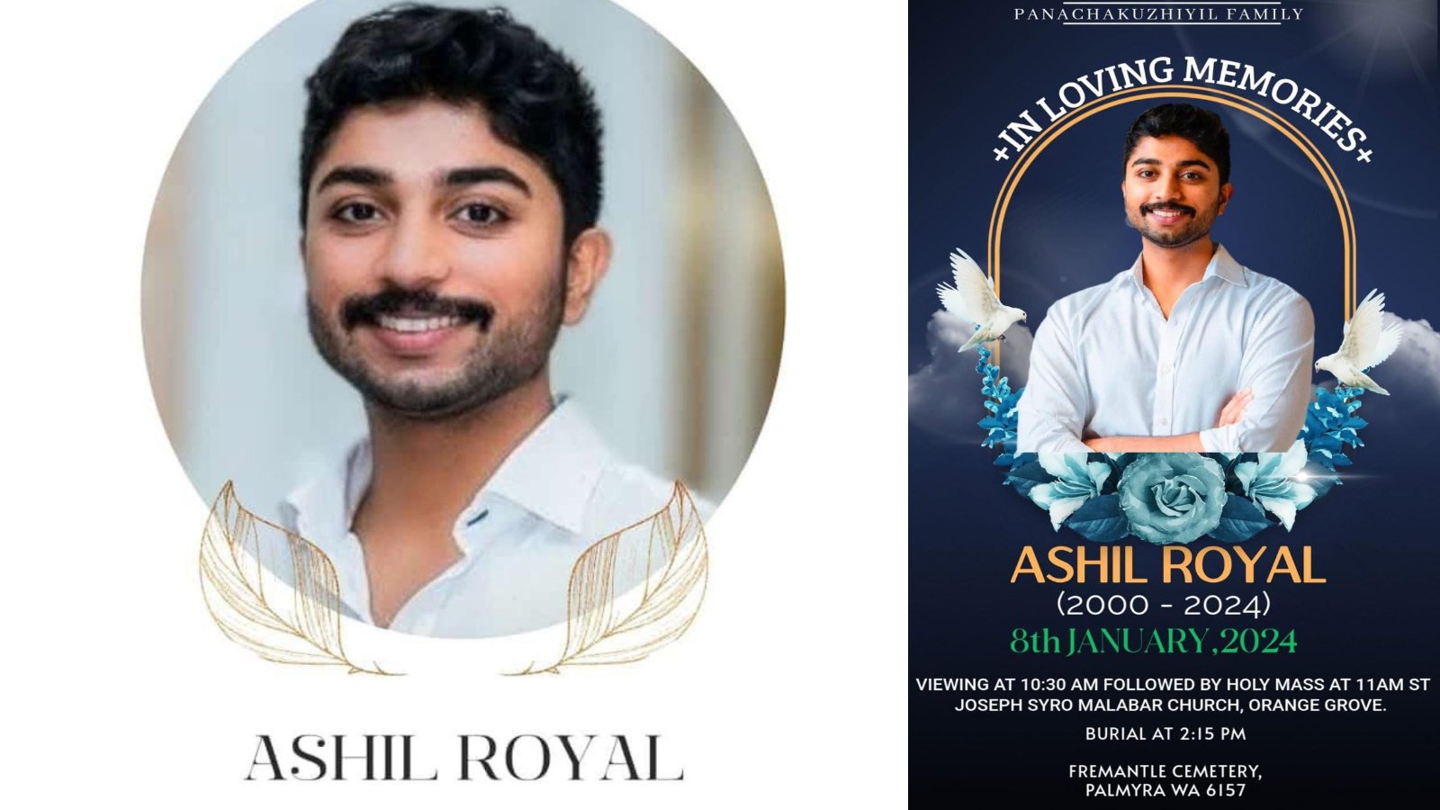 ഓസ്‌ട്രേലിയയിലെ പെർത്തിൽ കാറും ബൈക്കും കൂട്ടിയിടിച്ചുണ്ടായ അപകടത്തിൽ മരിച്ച തീക്കോയി പനയ്ക്കക്കുഴിയിൽ ആഷിൽ റോയലിന്റെ സംസ്കാരം നാളെ