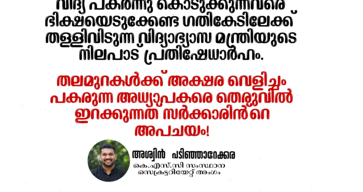 പതിനാറായിരത്തോളം അധ്യാപകരാണ് വർഷങ്ങളായി ശമ്പളമില്ലാതെ കേരളത്തിൽ ജോലി ചെയ്യുന്നത്.ഈ അധ്യാപകർ എങ്ങനെ ജീവിക്കണമെന്നാണ് മന്ത്രി പറയുന്നത്?വിദ്യ പകർന്നു കൊടുക്കുന്നവർ ഭിക്ഷയെടുത്ത് ജീവിക്കേണ്ട സാഹചര്യമാണ് ഇന്ന് നിലവിലുള്ളത്.