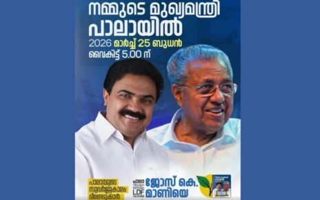 പാലാ : അമലോദ്ഭവ മാതാവിന്റെ അനുഗ്രഹം തേടി ടൗൺ കപ്പേളയിലേക്കുള്ള ഭക്തരുടെ നിലയ്ക്കാത്ത പ്രവാഹത്തിനു ഇന്നും നാളെയും പാലാ സാക്ഷ്യം വഹിക്കും. കൊടിതോരണങ്ങളാലും വൈദ്യുതി ദീപാലങ്കാരങ്ങളാലും കമനീയമായ പാലാ ജൂബിലി തിരുനാൾ പ്രഭയിലാണ്. വഴിവാണിഭങ്ങളും തൊട്ടിലാട്ടവും വിവിധ കലാപരിപാടികളും ജൂബിലിത്തിരുനാളിനു മാറ്റുകൂട്ടുന്നു. കാത്തലിക് യങ് മെൻസ് ലീഗ് (സിവൈഎംഎൽ) നടത്തുന്ന ടൂവീലർ ഫാൻസിഡ്രസ് മത്സരം ഇന്ന് വൈകിട്ട് 3 നു നടന്നു. ജൂബിലി ആഘോഷ കമ്മിറ്റി നേതൃത്വം നൽകുന്ന ജൂബിലി സാംസ്കാരിക ഘോഷയാത്ര ഇന്ന് വൈകിട്ട് 3.30നു Read More…