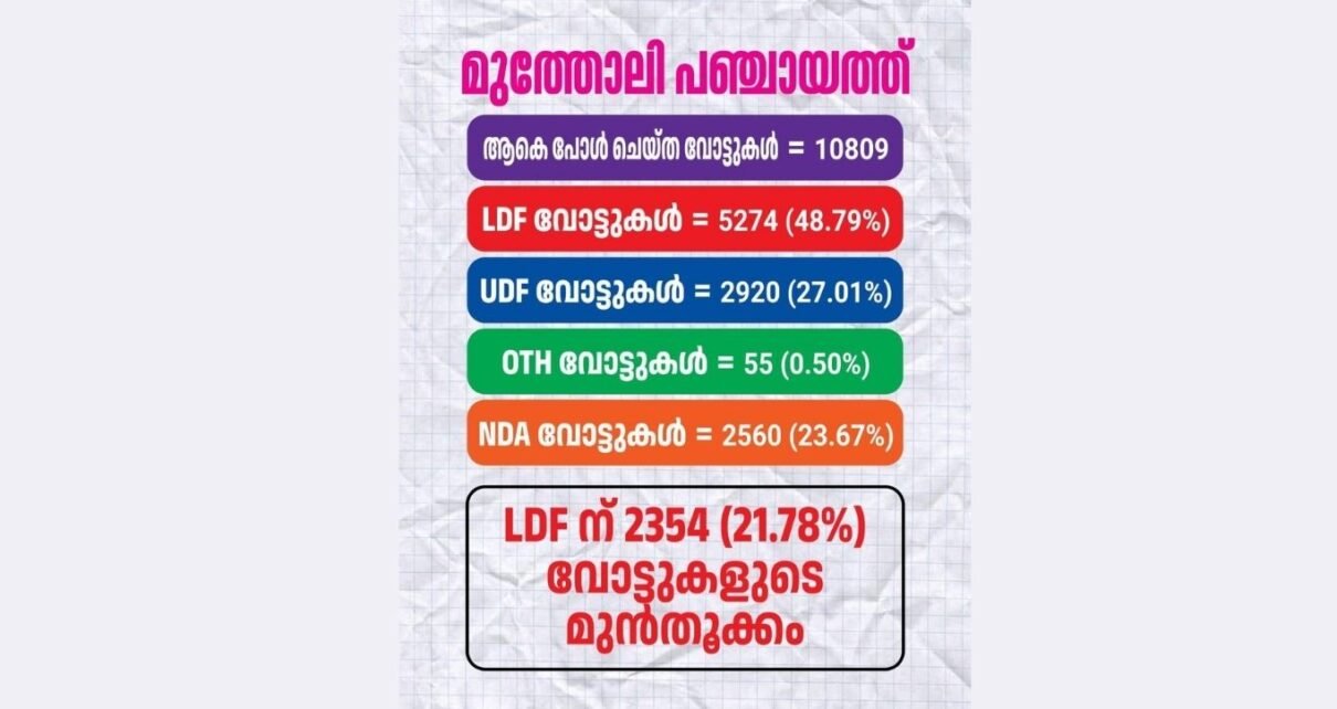 മുത്തോലിയിൽ രണ്ടിലയ്ക്ക് മുന്നിൽ സുല്ലിട്ട് യു.ഡി.എഫും, ബി.ജെ.പിയും ; തരിപോലുമില്ല മുത്താലിയിൽ കോൺഗ്രസ്