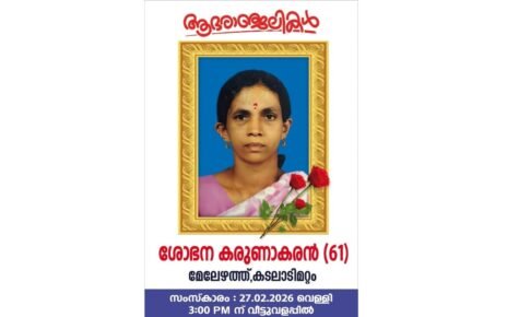 മൃതസംസ്കാര ശുശ്രുഷകൾ (22-01-2025) ബുധനാഴ്ച രാവിലെ 9.00 ന് വീട്ടിൽ ആരംഭിച്ച് അരുവിത്തുറ സെന്റ് ജോർജ് ഫൊറോനാ പള്ളിയിൽ സംസ്കരിക്കുന്നതാണ്.