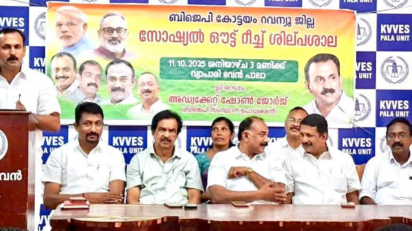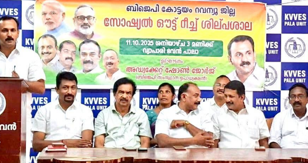 പാലാ വ്യാപാരഭവനിൽ ബിജെപി കോട്ടയം റെവന്യൂ ജില്ലാ സോഷ്യൽ ഔട്ട് റീച്ച് ശില്പശാല ഉദ്ഘാടനം ചെയ്തു സംസാരിക്കുകയായിരുന്നു അദ്ദേഹം.ഈ കഴിഞ്ഞ ദിവസം പാലായിൽ നടന്ന അക്രമ നടപടികൾ ദൗർഭാഗ്യകരമാണെന്നും, പരാധി ഉണ്ടെങ്കിൽ സിപിഎം ഭരിക്കുന്ന കേരളത്തിൽ പരധിപ്പെടുന്ന ആൾക്ക് നീതി കിട്ടില്ലാ എന്നാണ് കഴിഞ്ഞ ദിവസത്തെ സിപിഎം നേതാക്കുളുടെ പത്രസമ്മേളനത്തിൽ നിന്ന് മനസ്സിലാകുന്നത്.