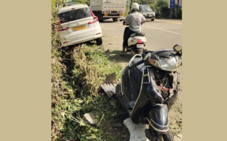 നായ കുറുകെ ചാടിയതിനെ തുടർന്ന് ബൈക്ക് നിയന്ത്രണം വിട്ട് മറിഞ്ഞ് അപകടം