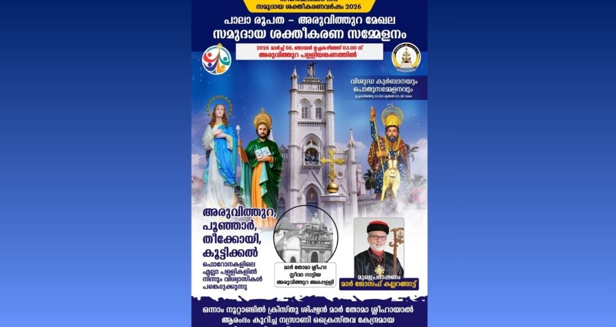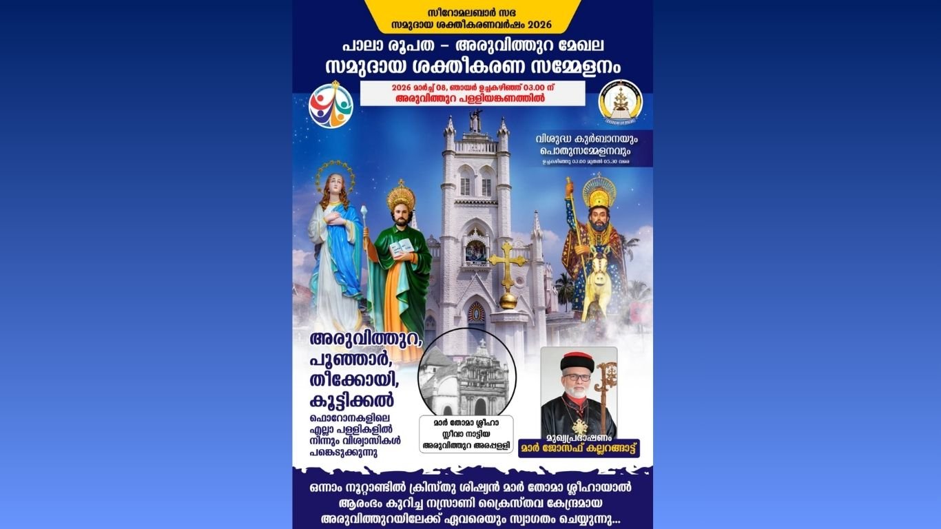 അരുവിത്തുറ :സീറോ മലബാർ സഭ 2026- മാണ്ട് സമുദായ ശക്തീകരണ വർഷമായി ആചരിക്കുകയാണ്. പാലാ രൂപതയിൽ 6 സോണലുകളിൽ ആയാണ് സമുദായശക്തീകരണ കൺവെൻഷനുകൾ സംഘടിപ്പിക്കുന്നത്. അരുവിത്തുറ, തുടങ്ങനാട്, അവിടുത്തെ പള്ളികളിലെ സമുദായ അംഗങ്ങളാണ് ഒരുമിച്ച് ചേരുക.