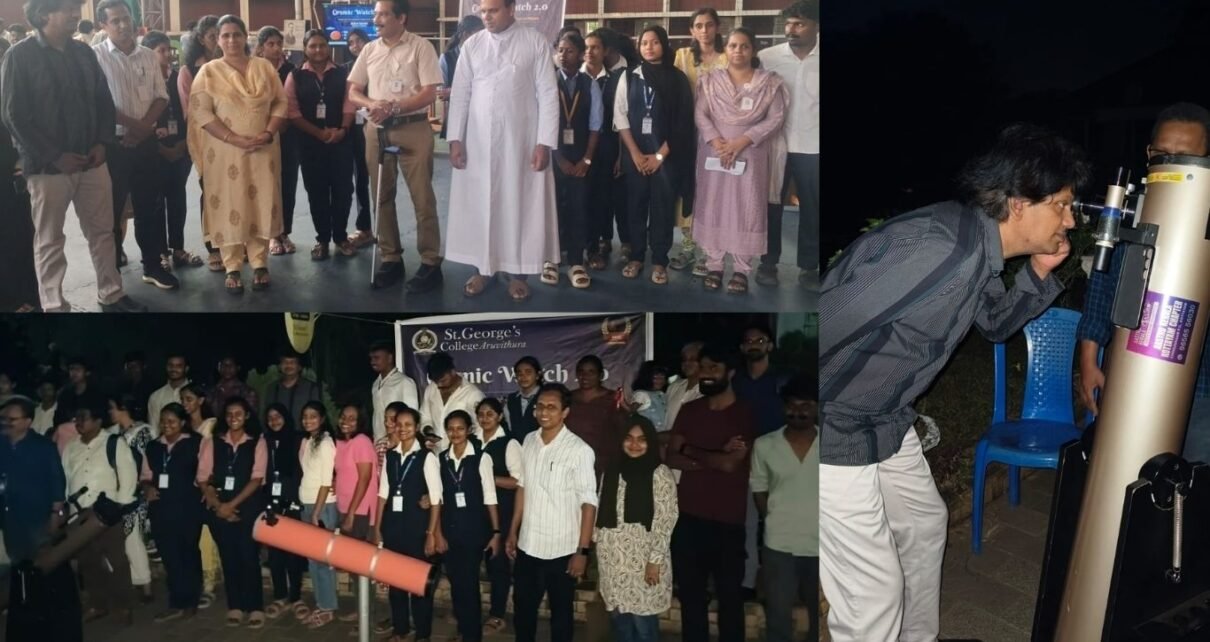 അരുവിത്തുറ സെൻ്റ് ജോർജസ് കോളേജ്, ഭൗതിക ശാസ്ത്ര ഗവേഷണ വിഭാഗവും ആസ്ട്രോ കേരള കോട്ടയം ചാപ്റ്ററും സംയുക്തമായി സ്കൂൾ വിദ്യാർത്ഥികൾക്കും പൊതുജനങ്ങൾക്കും വേണ്ടി ഒരുക്കിയ ആകാശ കാഴ്ചകൾ വിദ്യാർത്ഥികൾക്ക് നവ്യാനുഭൂതി പകർന്നു.