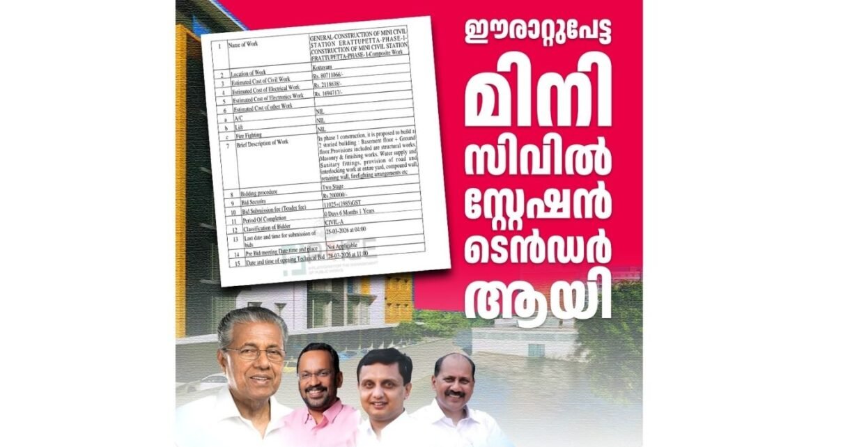 ഈരാറ്റുപേട്ട മിനി സിവിൽ സ്റ്റേഷൻ ടെൻഡറായി