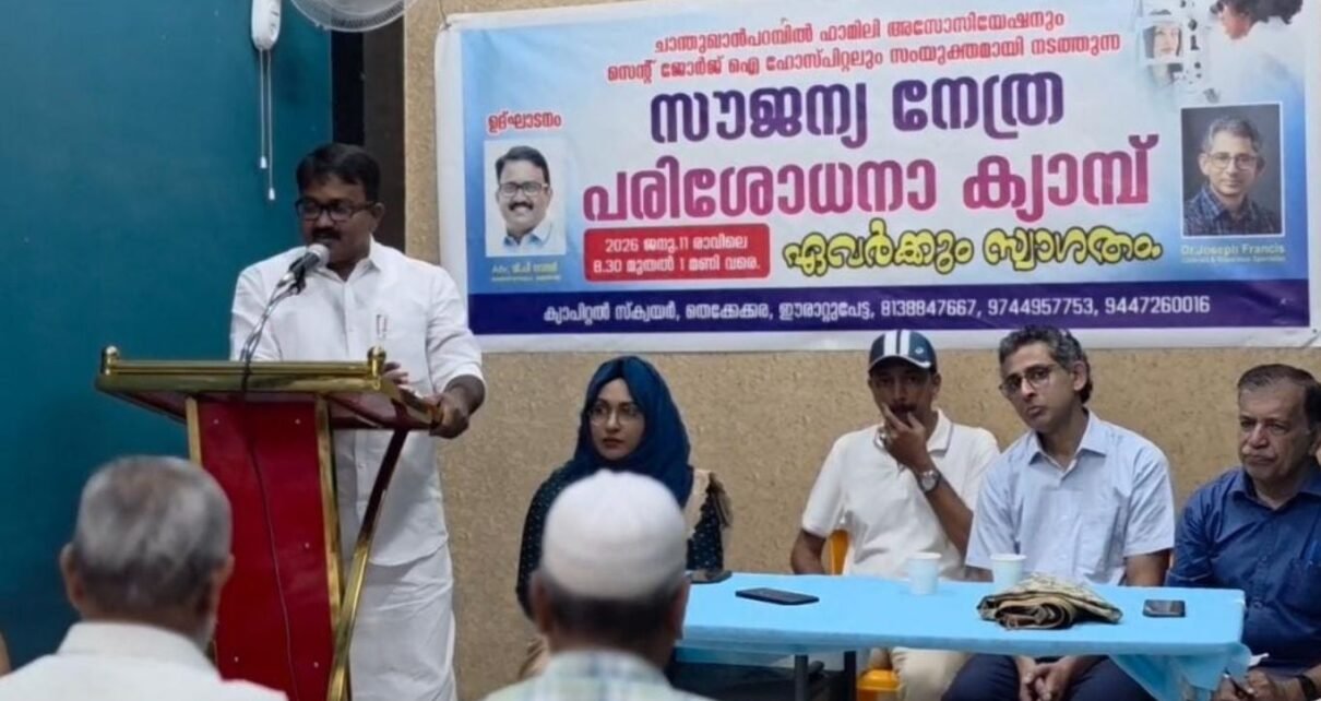 ഈരാറ്റുപേട്ട: ചാന്തുഖാൻപറമ്പിൽ ഫാമിലി അസോസിയേഷൻ്റെ നേതൃത്വത്തിൽ സെൻ്റ് ജോർജ് കണ്ണാശുപത്രിയുടെ സഹകരണത്തോടെ നേത്ര പരിശോധനാ ക്യാമ്പ് നടത്തി.നഗരസഭാ ചെയർമാൻ അഡ്വ. വി. പി.നാസർ ഉദ്ഘാടനം ചെയ്തു.