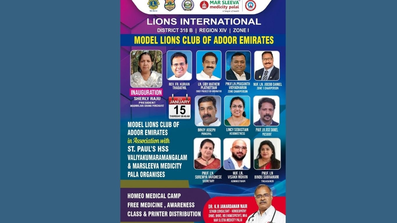 മൂന്നിലവ്: മോഡൽ ലയൺസ് ക്ലബ്ബ് ഓഫ് അടൂർ എമിറേറ്റ്സിൻറ നേതൃത്വത്തിൽ മൂന്നിലവ് സെൻറ് പോൾസ് HSS ൽ സൗജന്യ ഹോമിയോ മെഡിക്കൽ ക്യാമ്പും ബോധവൽക്കരണ ക്ളാസും പ്രിൻറർ വിതരണവും നടത്തപ്പെടും.