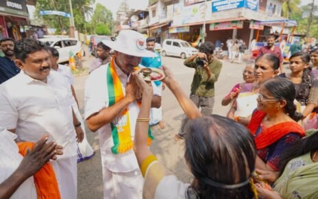 കാഞ്ഞിരപ്പളളി: ദുഖവെള്ളി ദിനത്തിൽ വിശ്വാസി സമൂഹത്തിനൊപ്പം കുരിശിൻ്റെ വഴിയിൽ എൻ ഡി എ സ്ഥാനാർഥി ജോർജ് കുര്യൻ പങ്കെടുത്തു. ഇന്ന് രാവിലെ മണിമല പള്ളിയിൽ നടന്ന കുരിശിൻ്റെ വഴിയിൽ ആണ് അദ്ദേഹം പങ്കെടുത്തത്.