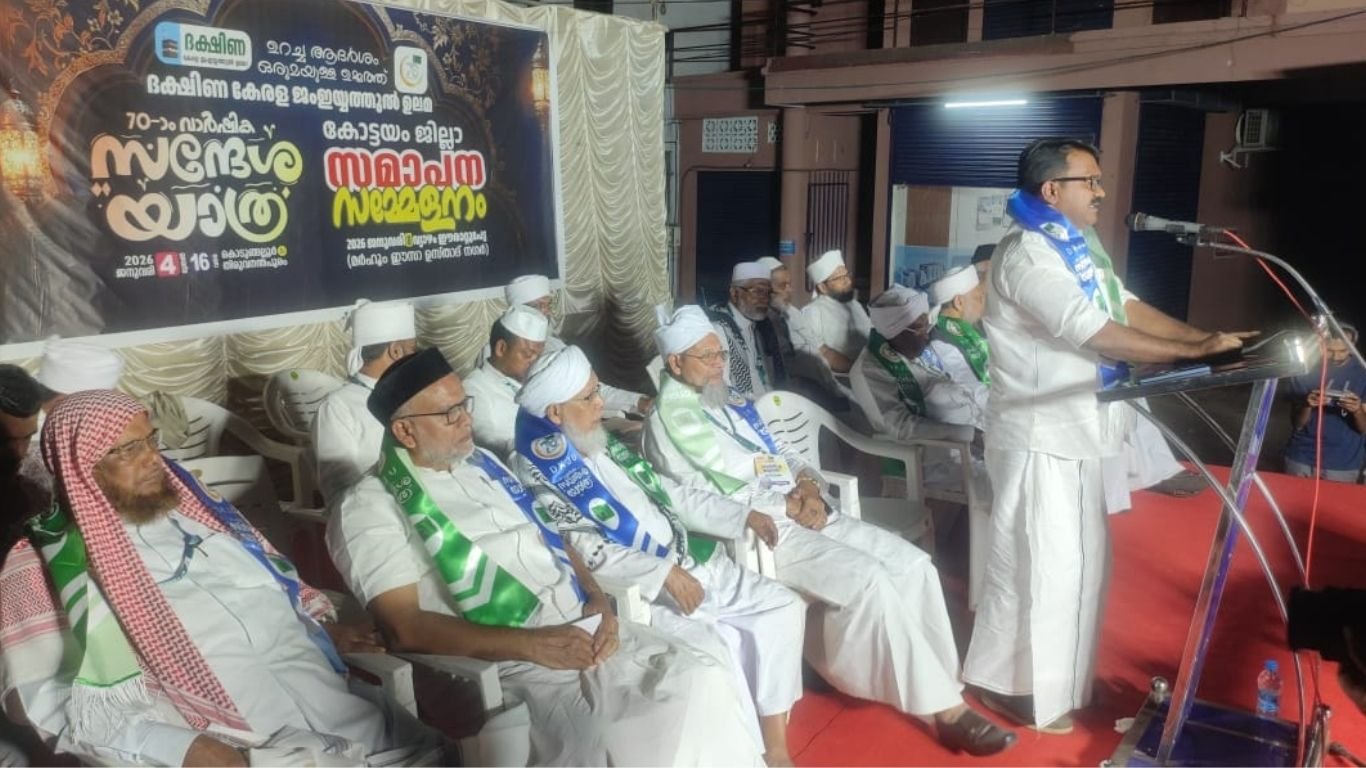 സെൻട്രൽ ജംഗ്ഷനിൽ നടന്ന സ്വീകരണ സമാപന സമ്മേളനം ഈരാറ്റുപേട്ട നഗരസഭാ ചെയർമാൻ അഡ്വ. വി.പി. നാസർ ഉദ്ഘാടനം ചെയ്തു. ദക്ഷിണ കേരള ജംഇയ്യത്തുൽ ഉലമ മീനച്ചിൽ താലൂക്ക് കമ്മിറ്റി പ്രസിഡന്റ് അബ്ദുൽസലാം മൗലവി അധ്യക്ഷത വഹിച്ചു.