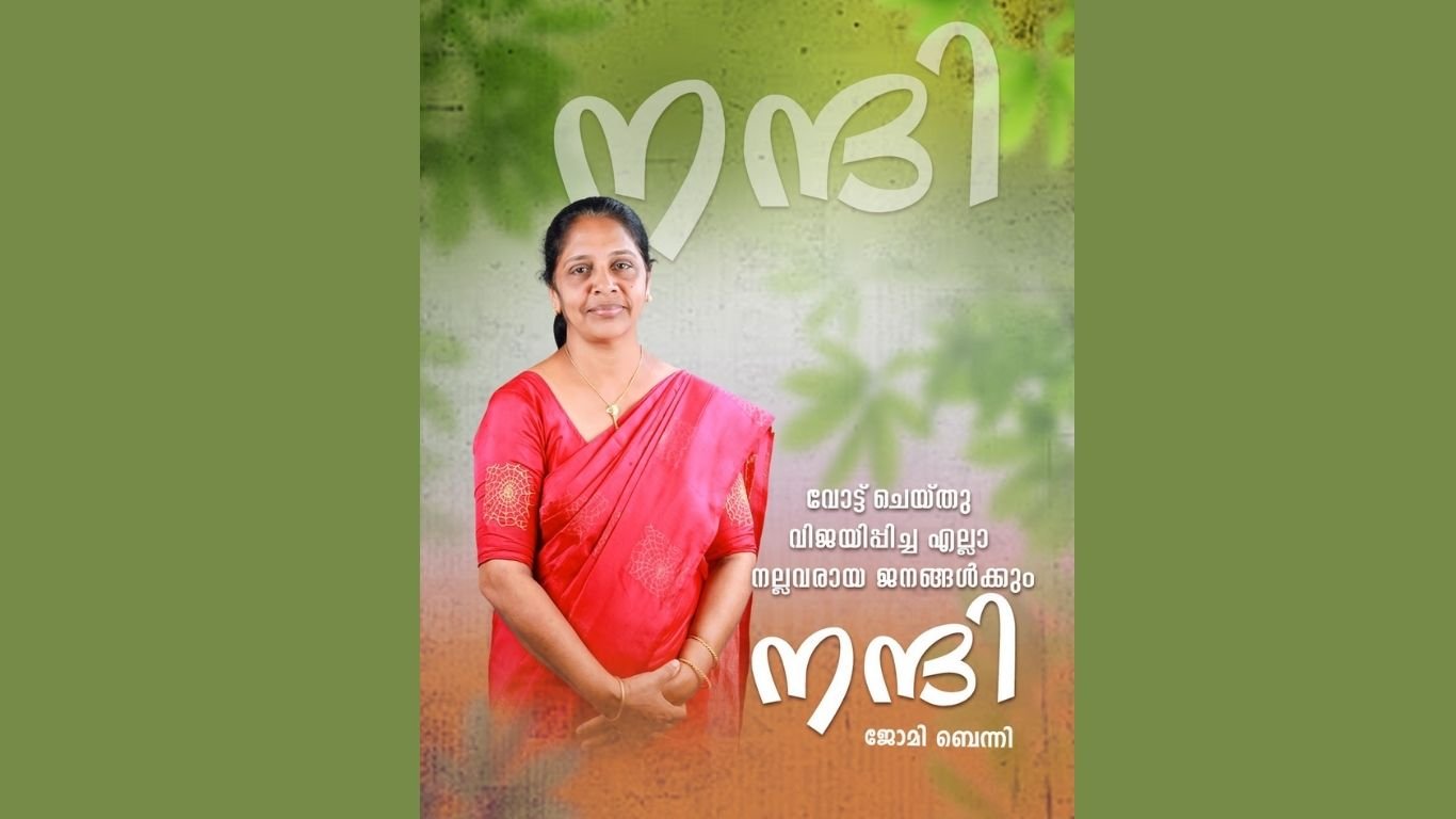 തെരഞ്ഞെടുപ്പ് ഫലം വന്നപ്പോൾ വാർഡിന്റെ മനസ്സറിഞ്ഞ് കോൺഗ്രസ് പാർട്ടി എടുത്ത തീരുമാനം അക്ഷരാർത്ഥത്തിൽ ശരി വയ്ക്കുന്നതാണ് കാണാൻ സാധിച്ചത്. ഇത്തവണ 105 വോട്ടുകളുടെ വലിയ ഭൂരിപക്ഷമാണ് ജനങ്ങൾ ജോമി ബെന്നിക്ക് നൽകിയത്.