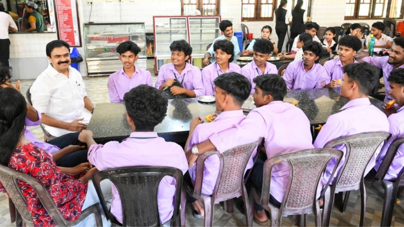പിന്നീട് പാലാ സെൻറ് തോമസ് കോളേജ് ക്യാമ്പസിൽ.ജോസ് കെ മാണിയെ കണ്ടയുടൻ ക്യാമ്പസിൽ കൂട്ടം കൂടി നിന്ന വിദ്യാർഥികൾ ആവേശത്തോടെ അദ്ദേഹത്തിൻ്റെ അടുത്തേക്ക് ഓടിയെത്തി. അവർ അദ്ദേഹത്തെ കോളേജിന്റെ പല ഭാഗങ്ങളിലേക്ക് കൊണ്ടുപോവുകയും സഹപ്രവർത്തകരെ പരിചയപ്പെടുത്തുകയും ചെയ്തു.പിന്നീട് വിദ്യാർഥികളുമായി നേരെ ക്യാന്റീനിലെത്തി. അവരോടൊപ്പം അവിടെയിരുന്ന് ലഘു ഭക്ഷണം കഴിച്ച് വിശദമായ സംസാരം.