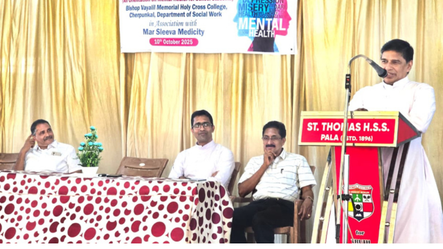 പാലാ : ബിഷപ്പ് വയലിൽ മെമ്മോറിയൽ ഹോളി ക്രോസ് കോളേജ്, സോഷ്യൽ വർക്ക് വിഭാഗത്തിന്റെ ആഭിമുഖ്യത്തിൽ ലോകമാനസികാരോഗ്യ ദിനത്തോട് അനുബന്ധിച്ചു “മൈൻഡ് യുവർ മൈൻഡ് – മാനസികാരോഗ്യ ബോധവത്കരണ പരിപാടി” പാലാ രൂപതയുടെ കീഴിലുള്ള എല്ലാ ഹയർ സെക്കന്ററി സ്കൂളുകളിലും സംഘടിപ്പിച്ചു. മാർ ശ്ലീവാ മെഡിസിറ്റിയിലെ സൈക്കോളജി വിഭാഗം കോളേജിലെ വിദ്യാർത്ഥികൾക്ക് പരിശീലനം നൽകി.