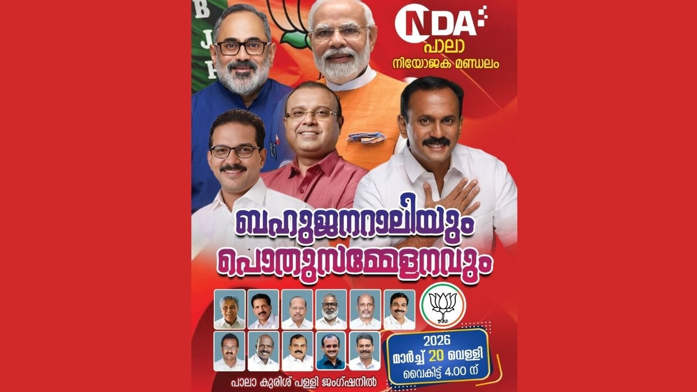 വൈകിട്ട് നാലിന് കൊട്ടാരമറ്റം ബസ് സ്റ്റാൻഡ് പരിസരത്ത് നിന്ന് ആരംഭിക്കുന്ന റാലി മഹാറാണി ജംഗ്ഷൻ ചുറ്റി കുരിശുപള്ളി കവലയിൽ സമാപിക്കും. തുടർന്ന് നടക്കുന്ന പൊതു സമ്മേളനം ബിജെപി സംസ്ഥാന പ്രസിഡൻ്റ് രാജീവ് ചന്ദ്രശേഖർ ഉദ്ഘാടനം ചെയ്യും. ബിഡിജെഎസ് സംസ്ഥാന പ്രസിഡൻ്റ് തുഷാർ വെള്ളാപ്പള്ളി മുഖ്യാതിഥി ആയിരിക്കും. ട്വൻ്റി ട്വൻ്റി ചീഫ് കോർഡിനേറ്റർ സാബു എം ജേക്കബ് മുഖ്യപ്രഭാഷണം നടത്തും. ദേശീയ ജനാധിപത്യ സഖ്യത്തിൻ്റെ പ്രമുഖ നേതാക്കൾ പ്രസംഗിക്കും.