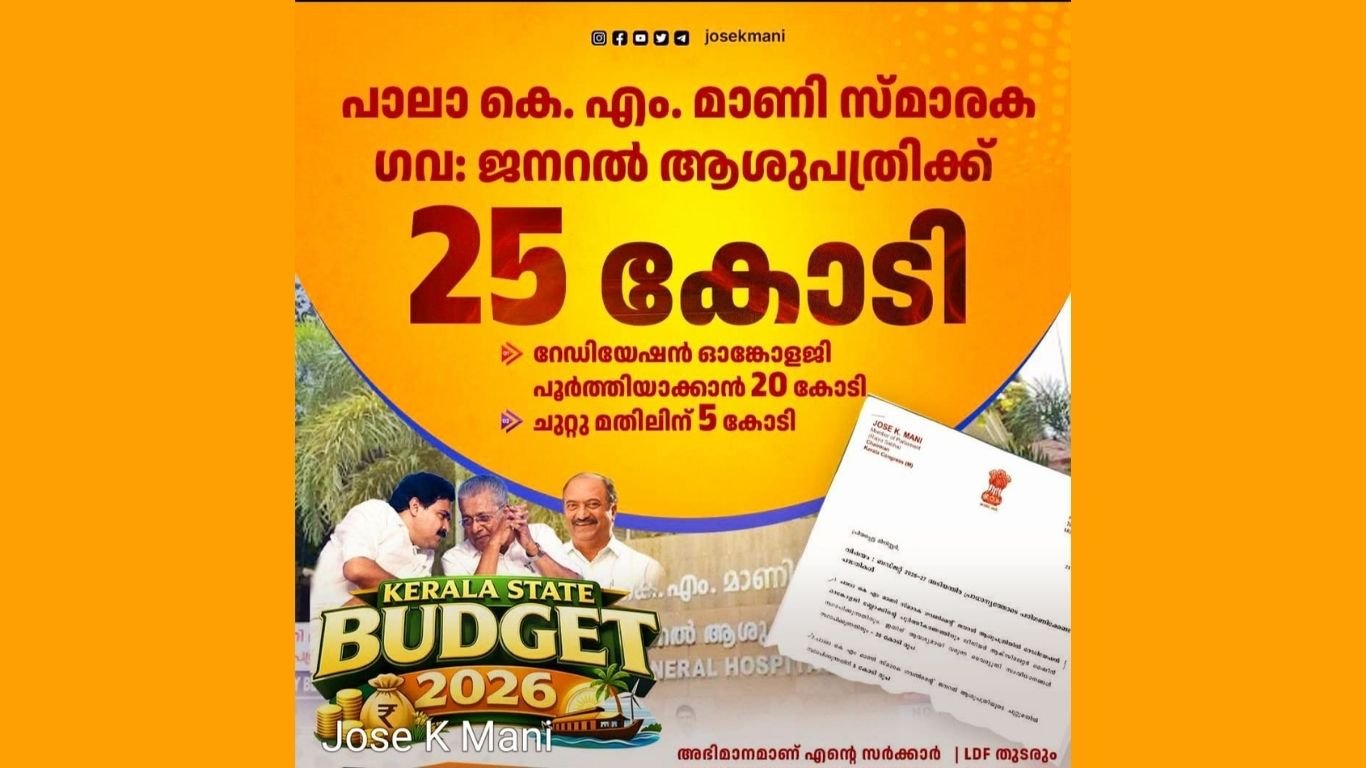 പാലാ : സംസ്ഥാന ബജറ്റില് പാലാ കെ.എം മാണി സ്മാരക ഗവണ്മെന്റ് ജനറല് ഹോസ്പിറ്റലിന് 25 കോടി രൂപ ലഭ്യമായതായി ജോസ് കെ.മാണി എം.പി അറിയിച്ചു. ധനമന്ത്രി കെ.എന് ബാലഗോപാലുമായി നടത്തിയ ചര്ച്ചയുടെ അടിസ്ഥാനത്തില് ഹോസ്പിറ്റലിലെ റേഡിയേഷന് ഓങ്കോളജി ബ്ലോക്കിന്റെ രണ്ടാം ഘട്ട പ്രവര്ത്തനങ്ങള്ക്കും പൂര്ത്തീകരണത്തിനും 20 കോടി രൂപയും, ഹോസ്പിറ്റലിന്റെ ചുറ്റുമതില് നിര്മ്മാണത്തിന് 5 കോടി രൂപയുമാണ് വകകൊള്ളിച്ചിരിക്കുന്നത്.