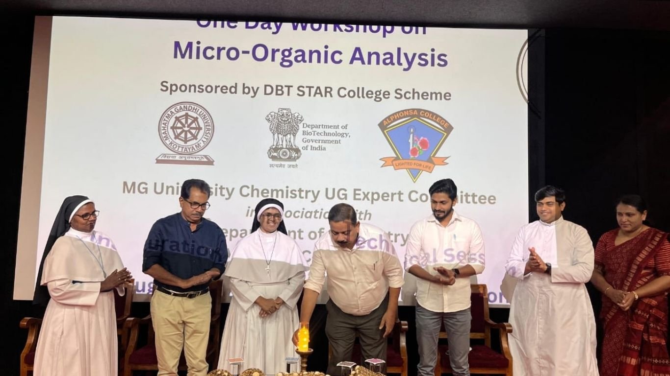 പാലാ: അൽഫോൻസ കോളേജ് DBT-STAR COLLEGE- സ്കീമിന്റെ ആഭിമുഖ്യത്തിൽ, കെമിസ്ട്രി വിഭാഗവും, M. G. University Chemistry UG Expert കമ്മിറ്റിയും ചേർന്ന് ‘Micro-Organic Analysis’ എന്ന വിഷയത്തിൽ ഏകദിന ശില്പശാല സംഘടിപ്പിച്ചു.