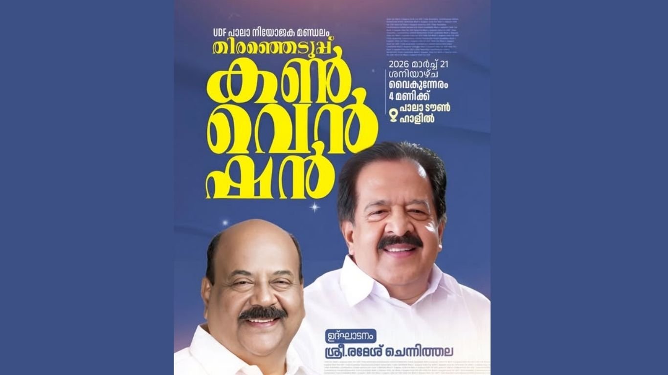 പാലാ: ഐക്യ ജനാധിപത്യമുന്നണി സ്ഥാനാർത്ഥി മാണി സി. കാപ്പന്റെ തെരഞ്ഞെടുപ്പ് കൺവൻഷൻ നാളെ (ശനി) ടൗൺഹാളിൽ നടക്കും. ഉച്ചകഴിഞ്ഞ് 4 മണിക്ക് നടക്കുന്ന യോഗം മുൻ പ്രതിപക്ഷ നേതാവ് രമേശ് ചെന്നിത്തല ഉദ്ഘാടനം ചെയ്യും. നിയോജക മണ്ഡലം ചെയർമാൻ െപ്രാഫ.സതീശ് ചെള്ളാനി അദ്ധ്യക്ഷത വഹിക്കും.