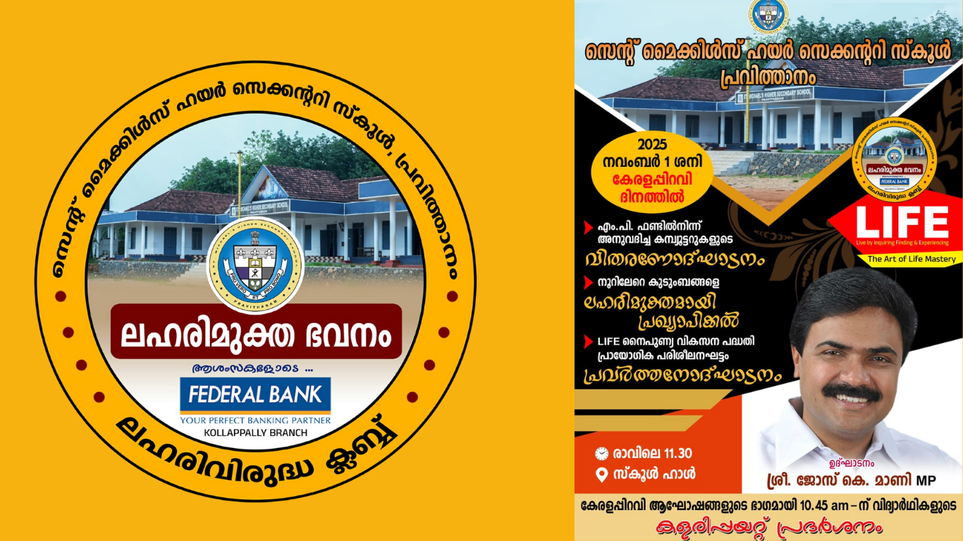ലഹരി മുക്ത കുടുംബങ്ങളുടെ പ്രഖ്യാപനം നവംബർ ഒന്ന് ശനിയാഴ്ച രാവിലെ 11.30 ന് ജോസ് കെ. മാണി എം. പി. നിർവ്വഹിക്കും. സ്കൂൾ മാനേജർ വെരി. റവ. ഫാ. ജോർജ് വേളൂപ്പറമ്പിൽ അധ്യക്ഷത വഹിക്കും.