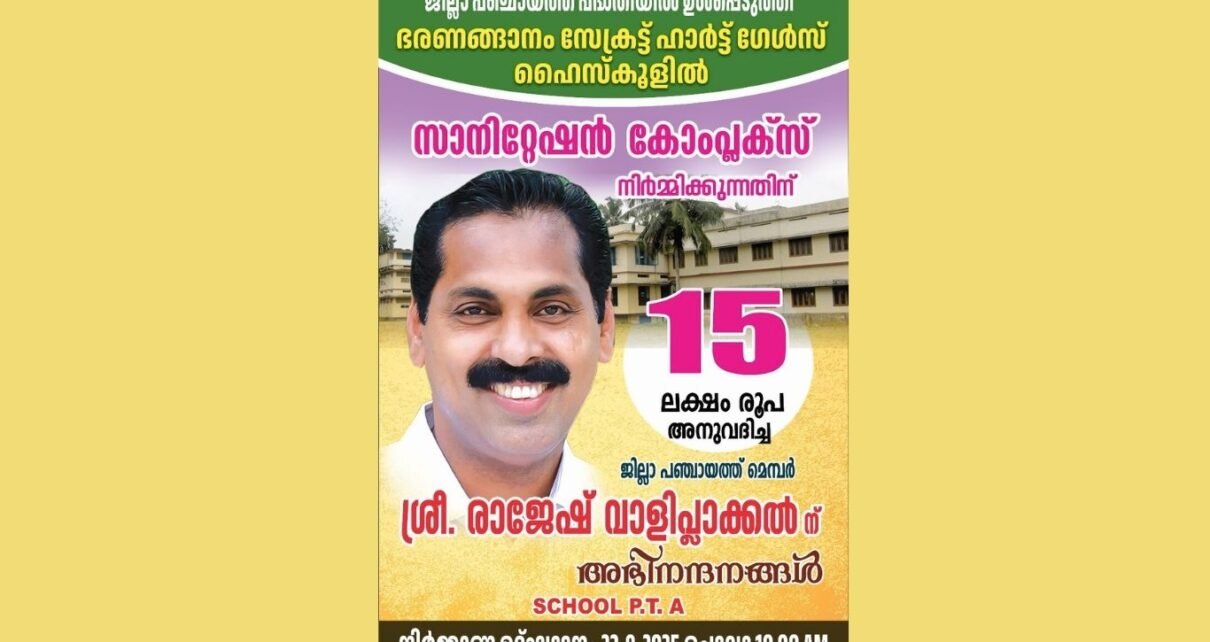 ഭരണങ്ങാനം: ജില്ലാ പഞ്ചായത്ത് പദ്ധതിയിൽ ഉൾപ്പെടുത്തി ജില്ലാ പഞ്ചായത്ത് മെമ്പർ രാജേഷ് വാളിപ്ലാക്കൽ അനുവദിച്ച ഫണ്ട് ഉപയോഗിച്ച് ഭരണങ്ങാനം സേക്രട്ട് ഹാർട്ട് ഗേൾസ് ഹൈസ്കൂളിൽ സാനിറ്റേഷൻ കോംപ്ലക്സ് നിർമ്മിക്കുന്നു.