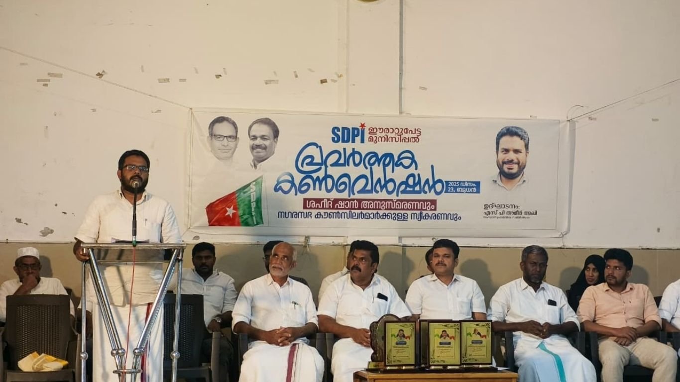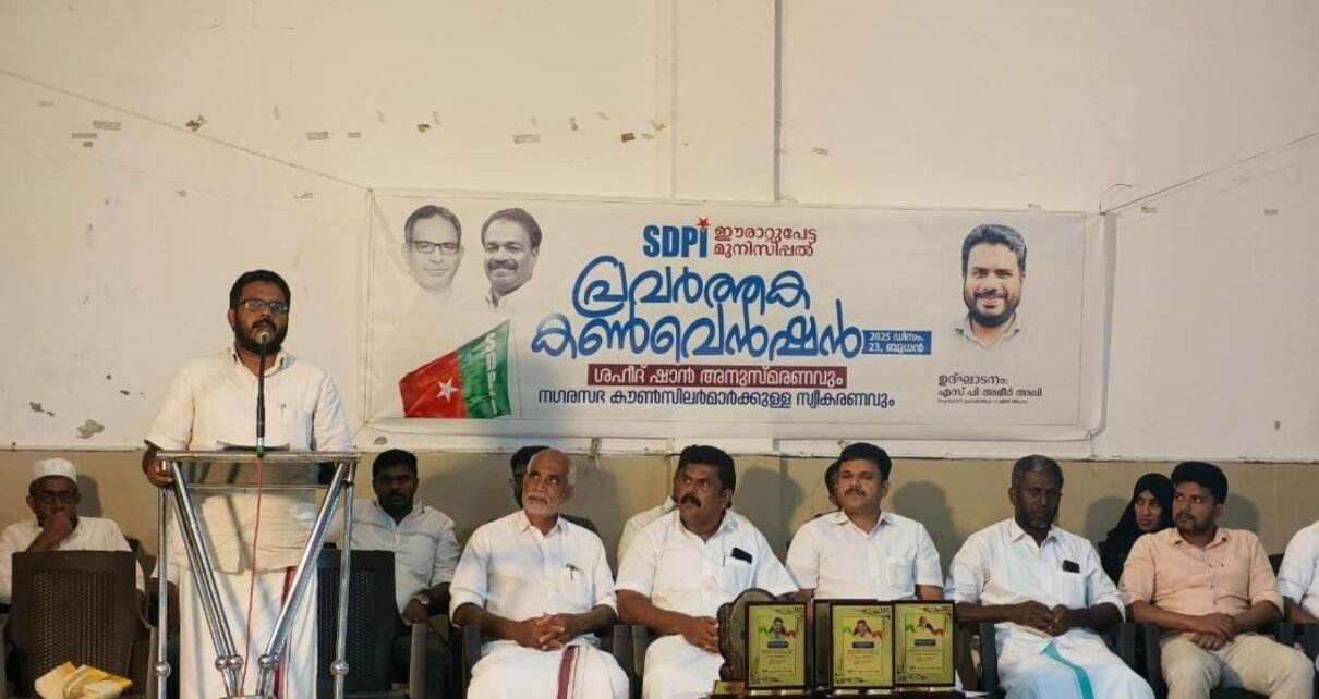 നടയ്ക്കൽ ഫൗസിയാ ഓഡിറ്റോറിയത്തിൽ വെച്ച് നടന്ന എസ് ഡി പി ഐ ഈരാറ്റുപേട്ട മുനിസിപ്പൽ പ്രവർത്തക കൺവെൻഷനും ശഹീദ് കെ എസ് ഷാൻഅനുസ്മരണവും ഉദ്ഘടാനം ചെയ്തു സംസാരിക്കുകയായിരുന്നു അദ്ദേഹം.