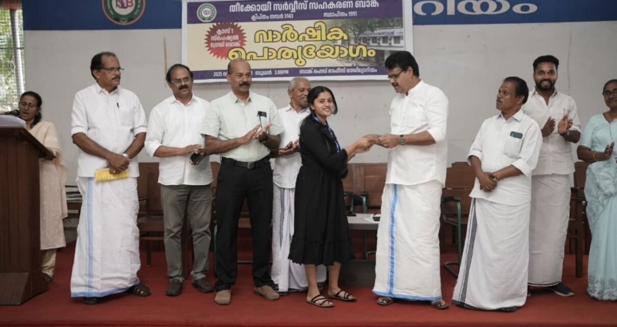 തീക്കോയി: തീക്കോയി സർവീസ് സഹകരണ ബാങ്കിന്റെ വാർഷിക പൊതുയോഗവും അവാർഡ് വിതരണവും നടത്തി. ബാങ്ക് പ്രസിഡന്റ് റ്റി. ഡി. ജോർജ് തയ്യിൽ അധ്യക്ഷത വഹിച്ചു. മുഖ്യമന്ത്രിയുടെ പോലീസ് മെഡൽ നേടിയ ബാങ്കിലെ അംഗം കോട്ടയം സൈബർ സെൽ അസി. സബ് ഇൻസ്പെക്ടർ ജോർജ് ജേക്കബ് മുതുകാട്ടിൽന് പ്രത്യേക ഉപഹാരം നൽകി ആദരിച്ചു.