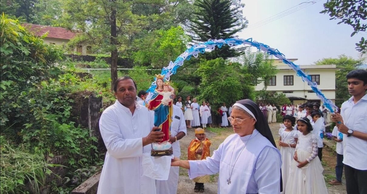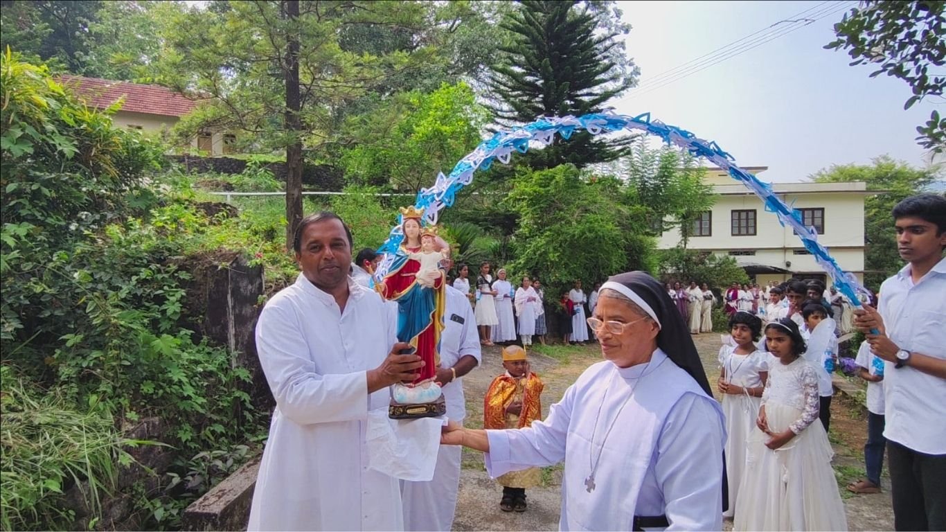 പാലാ സി.എം.സി.ജയമാതാ പ്രൊവിൻസിന്റെ അസിസ്റ്റൻറ് പ്രൊവിൻഷ്യൽ സിസ്റ്റർ കൃപാ മരിയയിൽ നിന്ന് മാതാവിൻ്റെ തിരുസ്വരൂപം വികാരി ഫാ.സ്കറിയ വേകത്താനം ഏറ്റുവാങ്ങി.ആഘോഷമായ റാലിയോടെ മാതാവിൻ്റെ തിരുസ്വരൂപം മഠം ചാപ്പലിൽ പ്രതിഷ്ഠിച്ചു.