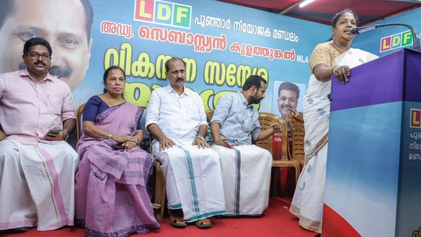 അഡ്വ.സെബാസ്റ്റ്യൻ കുളത്തുങ്കൽ എം.എൽ.എ നയിക്കുന്ന എൽ. ഡി.എഫ്. പൂഞ്ഞാർ നിയോ ജകമണ്‌ഡലം വികസന സന്ദേശയാത്രയുടെ സമാപന സമ്മേളനം പുഞ്ചവയലിൽ ഉദ്ഘാടനം ചെയ്‌തു കൊണ്ട് സംസാരിക്കുകയായിരുന്നു ഇ.എസ്. ബിജിമോൾ